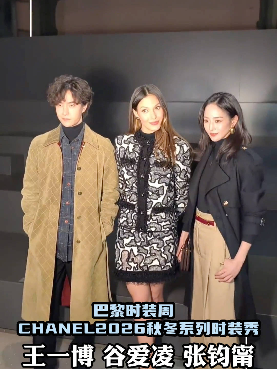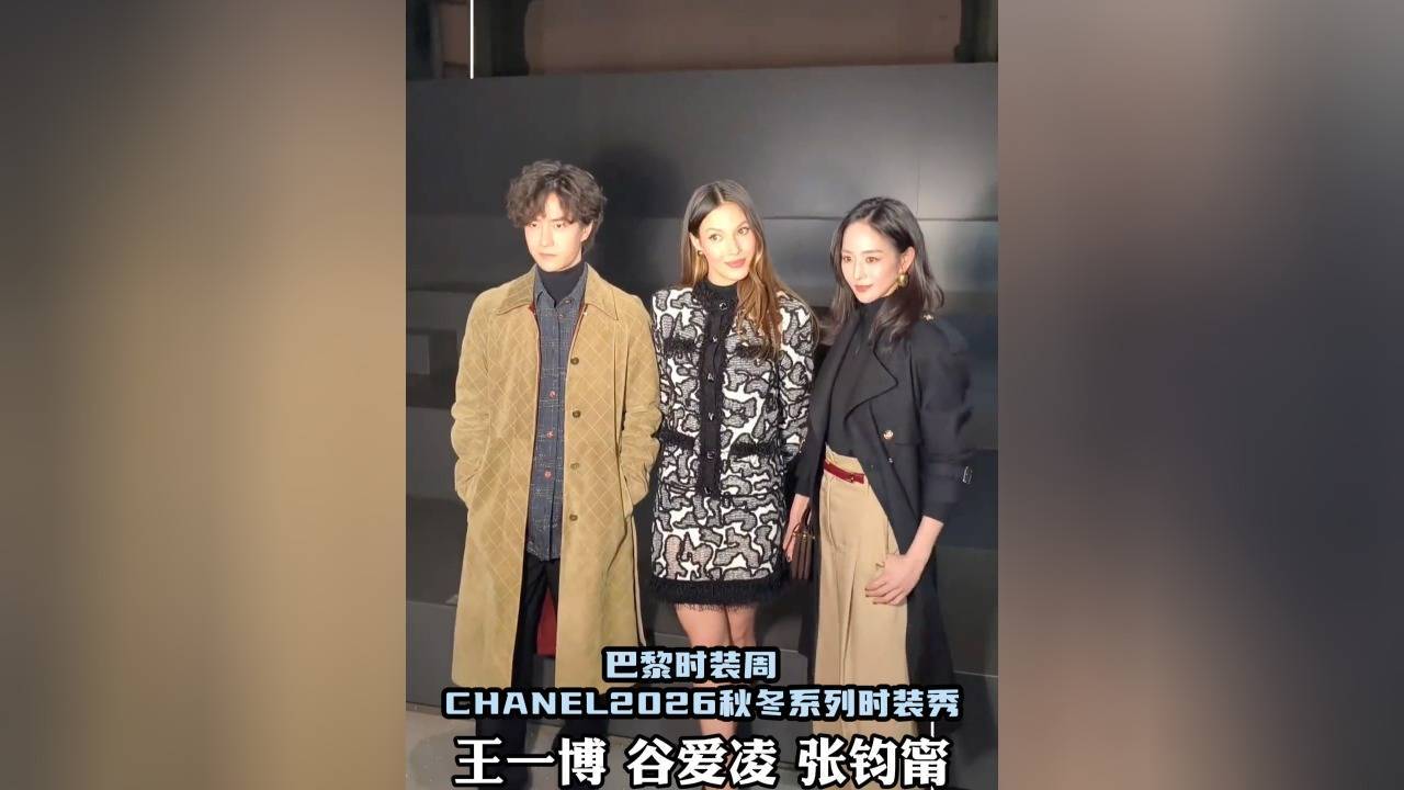 先说说这三位的「硬件配置」有多能打。王一博穿的全球首穿米色菱格纹麂皮大衣,被法国《费加罗报》夸「用东方骨相重构时尚审美」;谷爱凌那身黑白印花套装,把滑雪运动员的肌肉线条藏在利落剪裁里,网友调侃「这体脂率怕是能去参加下届冬奥会」;张钧甯更绝,全黑风衣配贴头皮短发,17年晨跑练出的下颌线比刚出炉的法棍还清晰。三人往那一站,活脱脱把时装周变成了「精英体能展示现场」。